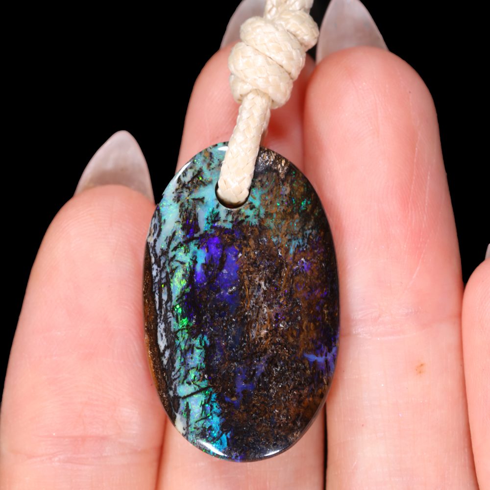 This Boulder Opal Pendant comes with knot slide style adjustable wax cotton rope necklace.